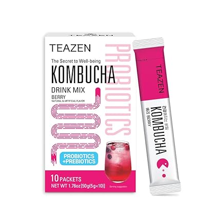 Amazon Com Teazen Kombucha Berry Flavor Sparkling Fermented Drink From Korea Powdered Drink Mix Prebiotics Tea Gut Health And Immunity Support 10 Sticks 1 76oz Grocery Gourmet Food